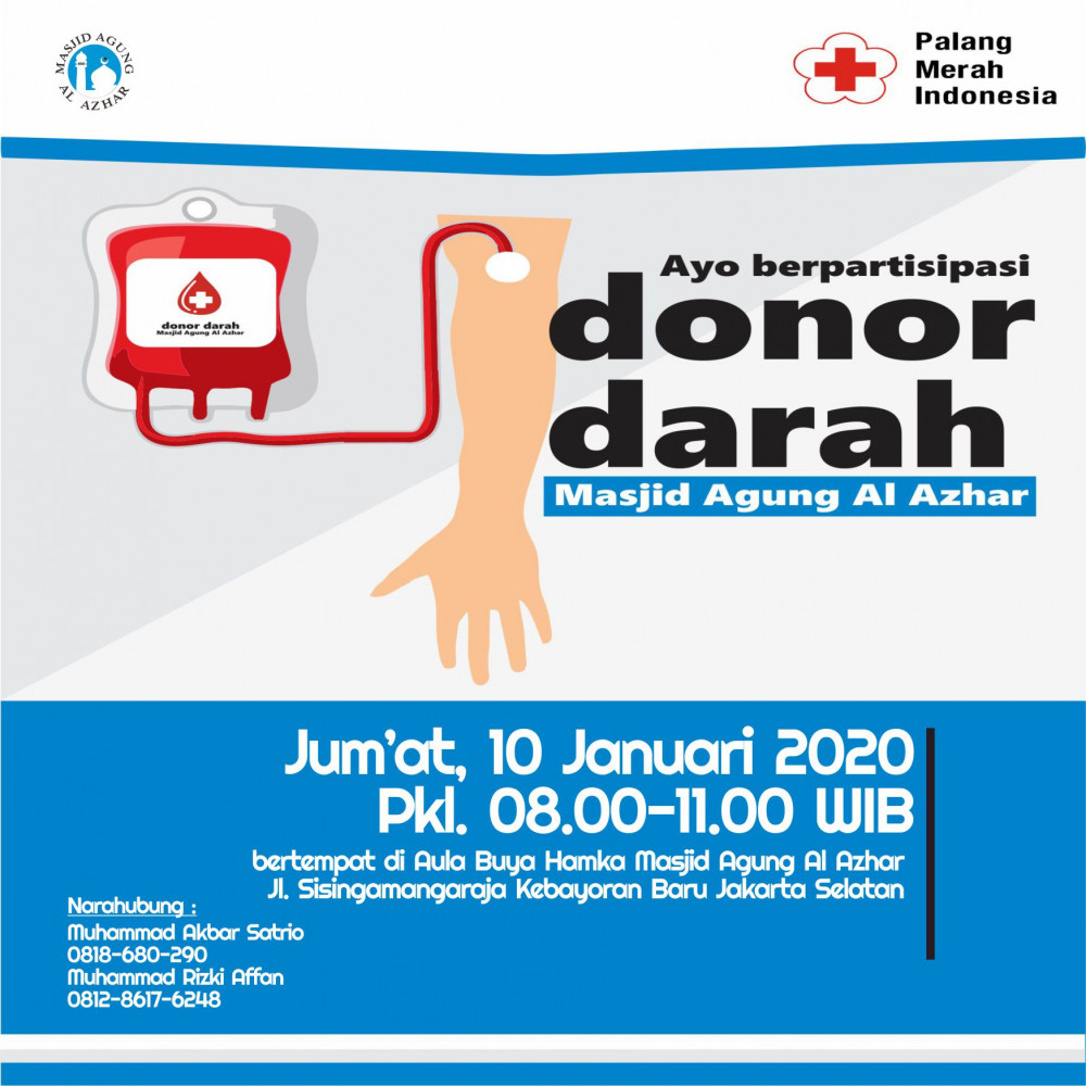 By @maalazhar : Masjid Agung Al Azhar bekerjasama dengan PMI mengajak jamaah sekalian ikut serta dalam Donor Darah :