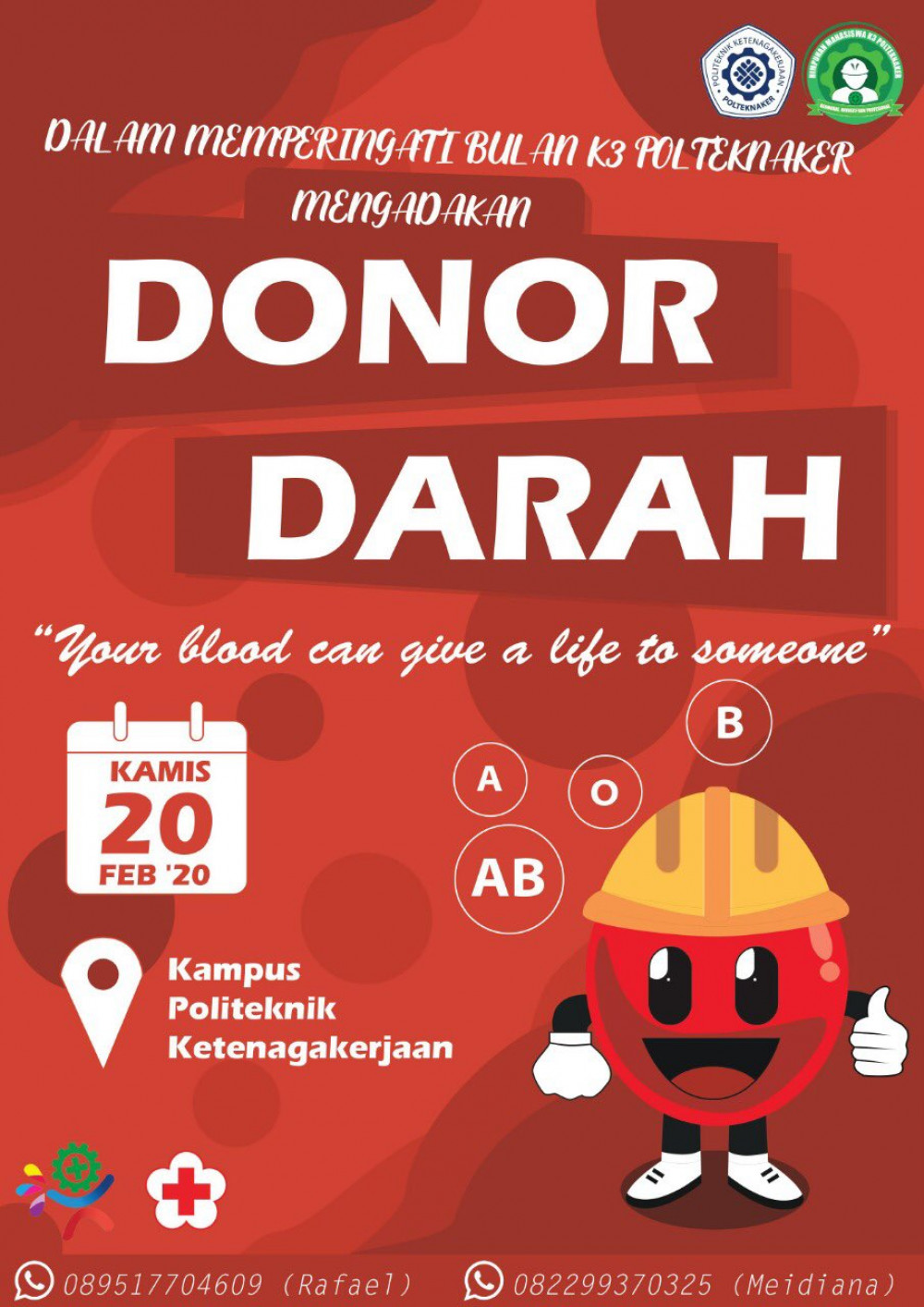 By @polteknaker : Dalam memperingati bulan K3, Polteknaker akan mengadakan Donor Darah pada :