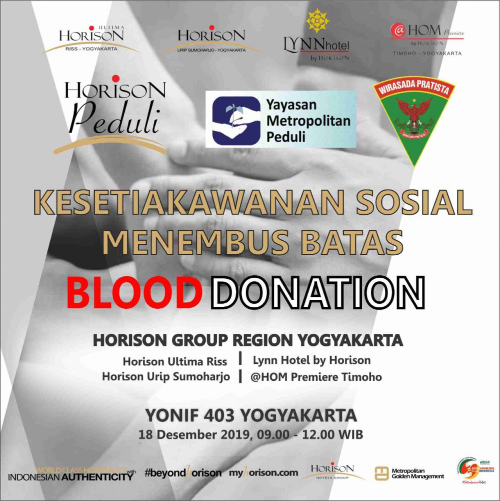 Horison Group Region Yogyakarta bekerjasama dengan Yayasan Metro Peduli dan Batalyon Infateri Mekanis 403 Wirasada Pratista akan mengadakan kegiatan donor darah lho. Kegiatan dilaksanakan di Yonif 403. Acaranya juga terbuka untuk umum, karena itu silahkan datang dan berpartisipasi.